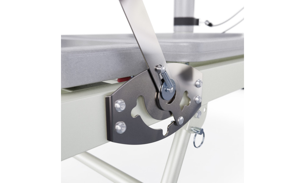 Реформер оснащён 5-ю пружинами для настройки уровня сопротивления и регулировкой поручня в 3-х положениях. Эспандеры расширяют диапазон упражнений, позволяя проработать все группы мышц. Размер подставки под ноги — 48 х 15 х 5,5 см — обеспечивает устойчивость и комфорт во время занятий. 2 защитные подкладки под ножки тренажера предотвращают скольжение и появление царапин на поверхности пола.